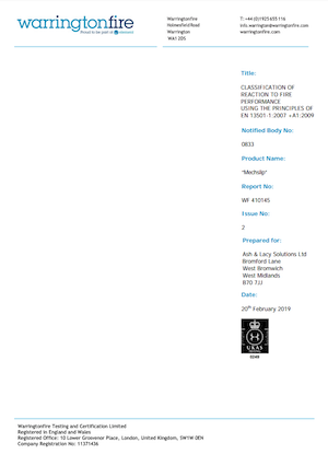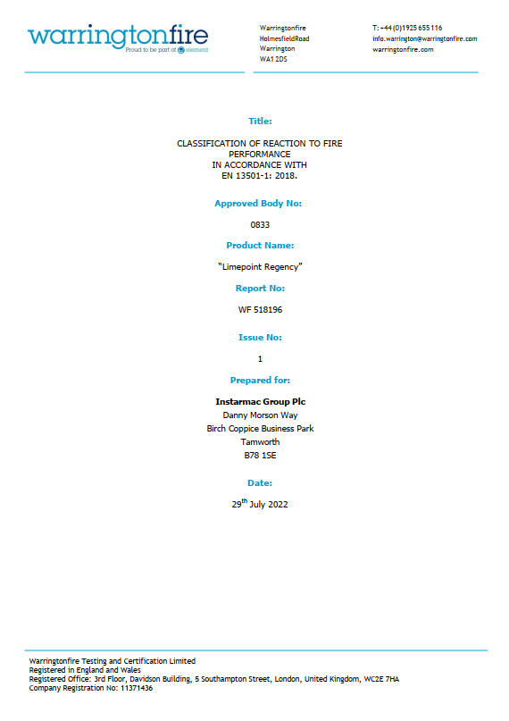 Reaction to Fire Performance Certificate - Regency Limepoint