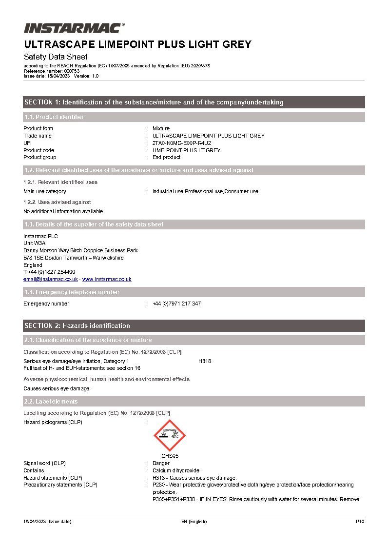 Ultrascape Limepoint Plus - Safety Data Sheet